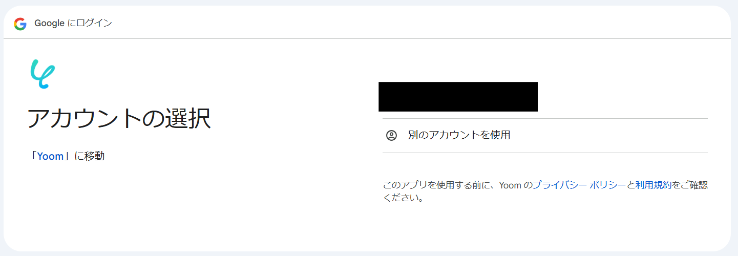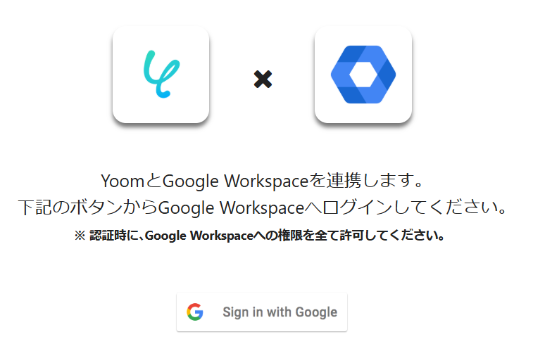 ・上記画面で「Sign in with Google」をクリックし、下記画面で連携するアカウントを選択します。