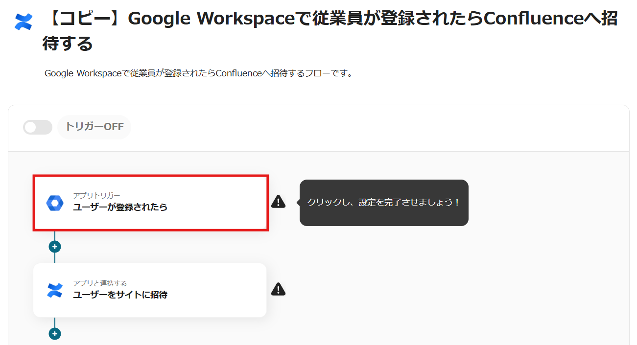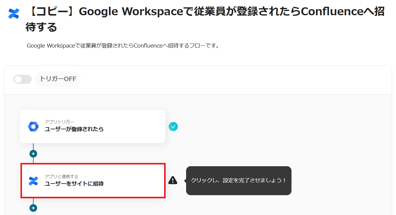 5.トリガーをONにすると、以降はGoogle Workspaceに従業員が登録されたら、自動的にConfluenceへ招待されます。