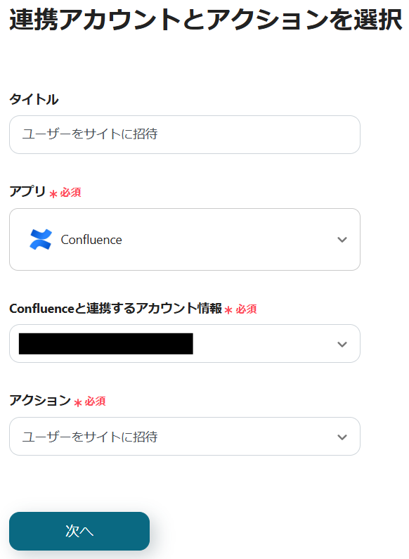 2.Confluenceと連携するアカウントを確認し、「次へ」をクリックします。