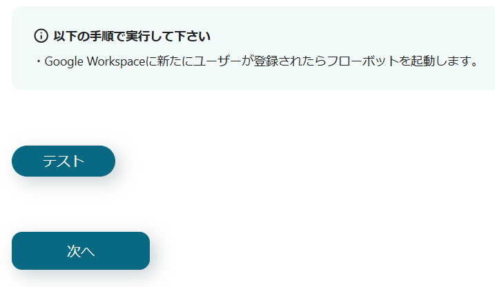 4.Google Workspaceに新しい従業員情報を登録しテストを行い、成功したら「次へ」をクリックします。