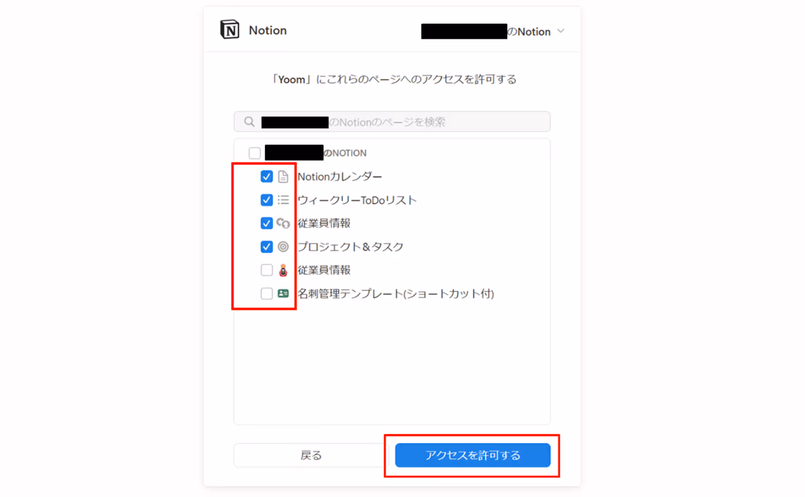(4)許可するページにチェックを入れ、「アクセスを許可する」をクリックします。