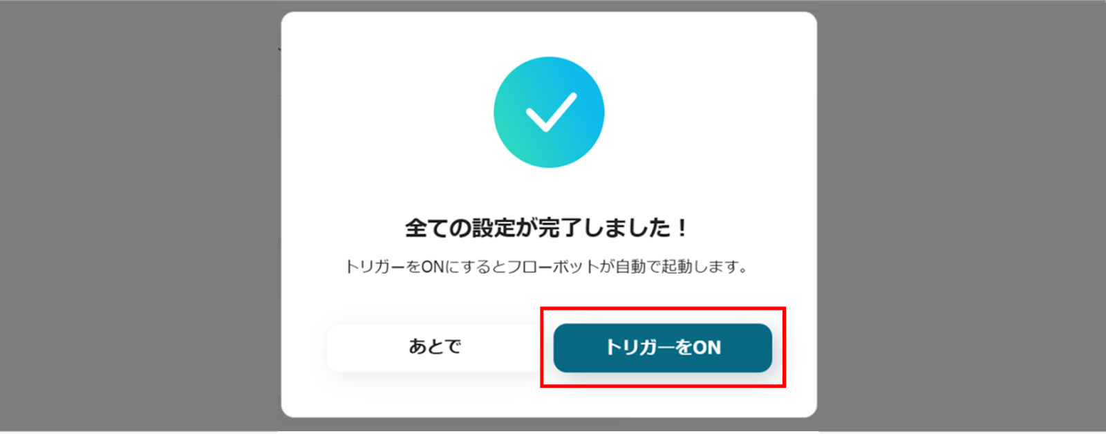 トリガーをONに設定しフロー稼働の準備完了
