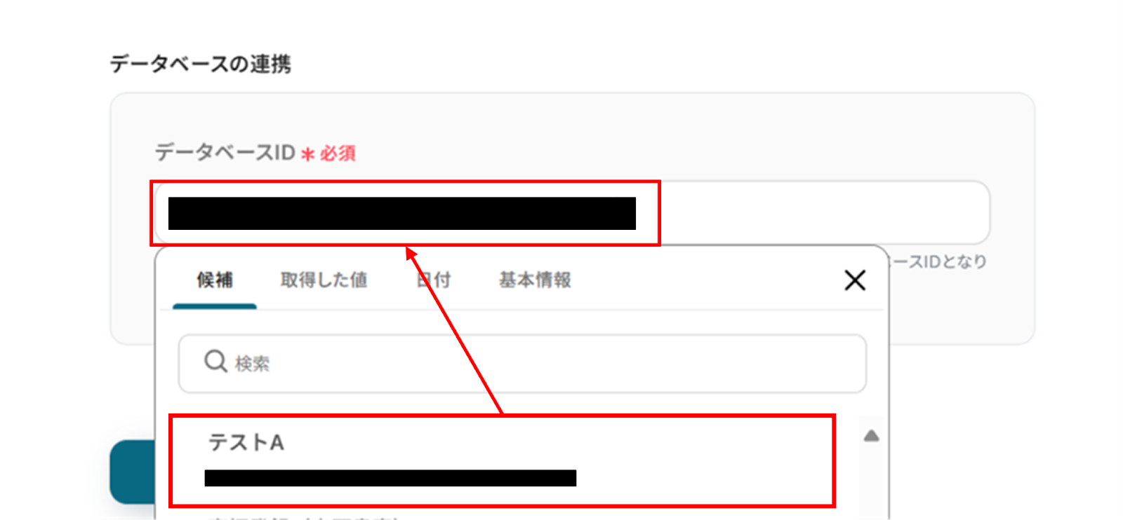 下へ進み、データベースIDを候補から選択します。 入力が終わったら「次へ」をクリックしましょう!