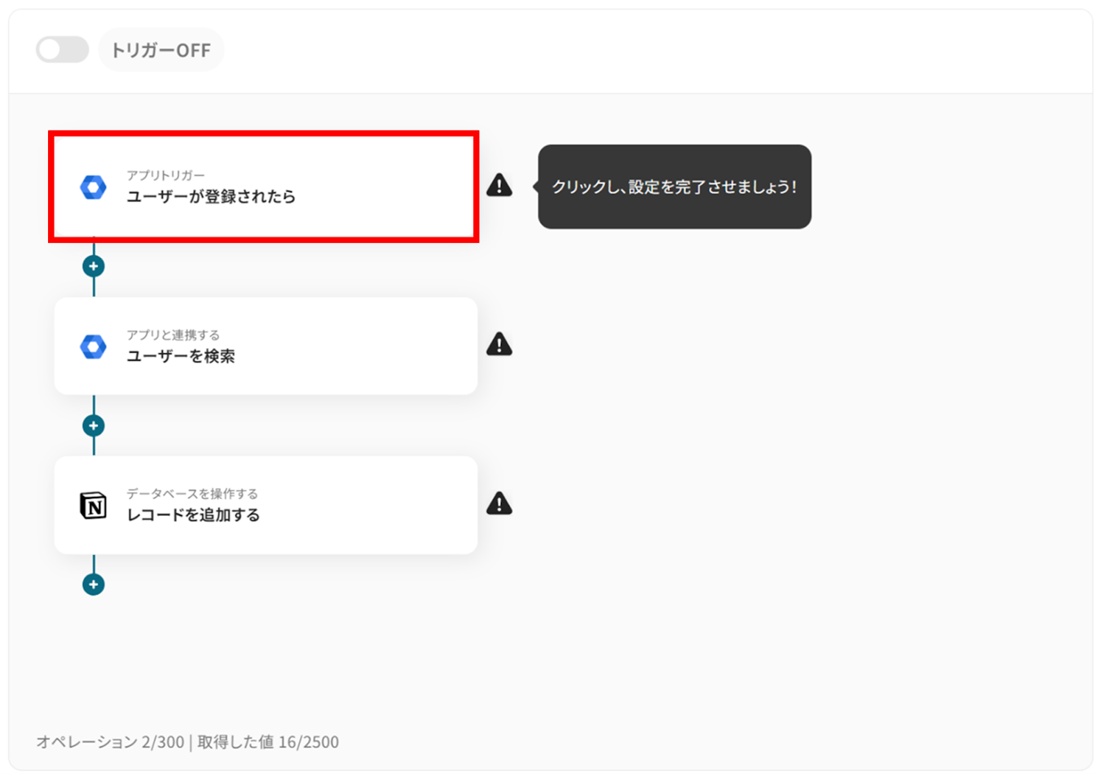アプリトリガーの設定とNotionの設定
