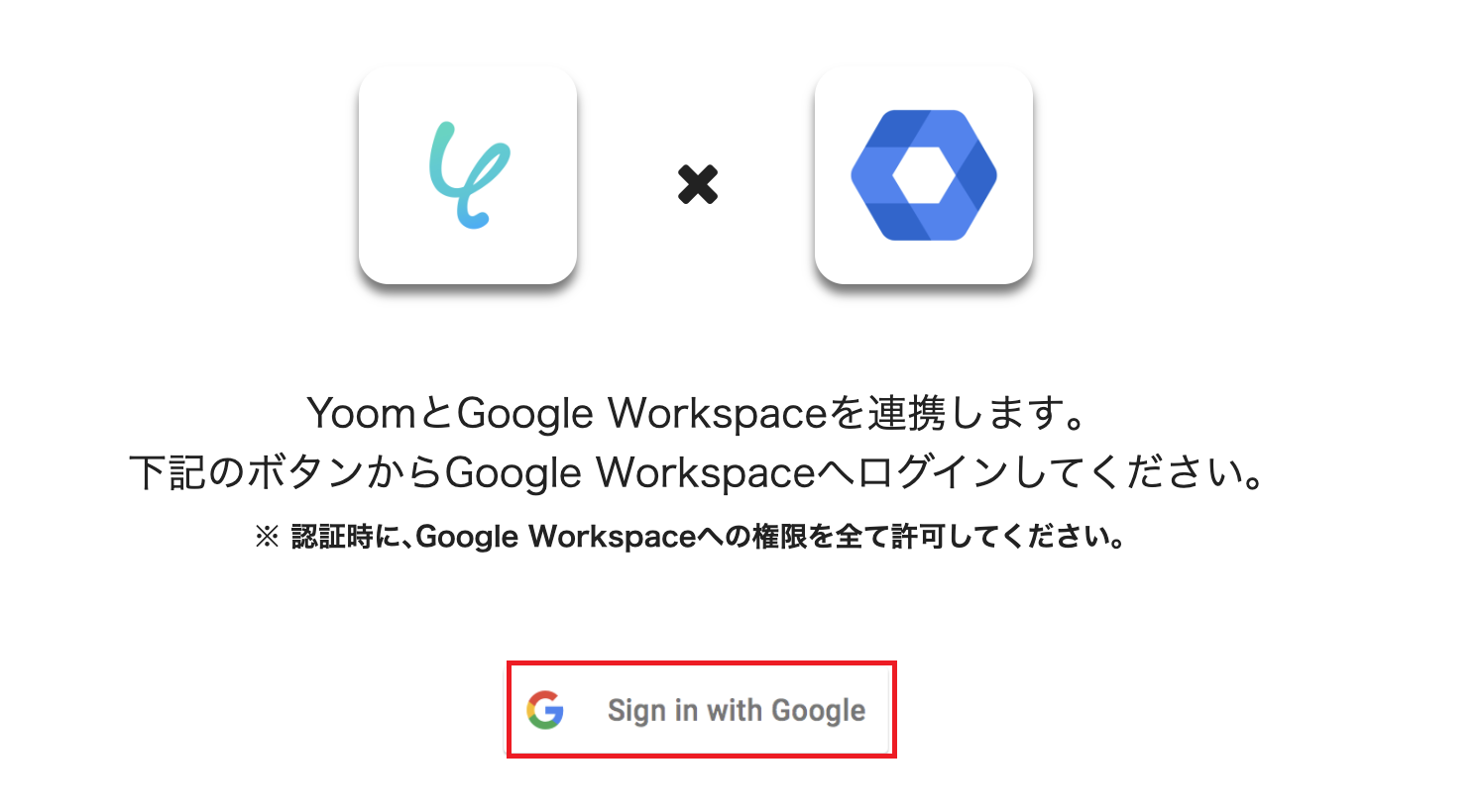 上記画面が表示されたら「Sign in with Google」をクリックします。