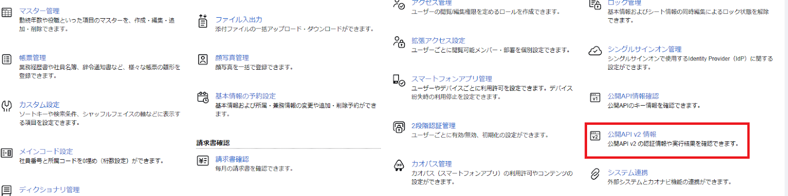 次に、右下の「公開API v2 情報」をクリックしてください。