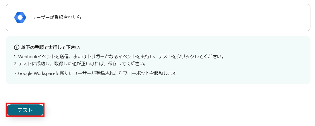 先ほどと同じように「テスト」をクリックし、問題がなければ「保存する」をクリックしてください。