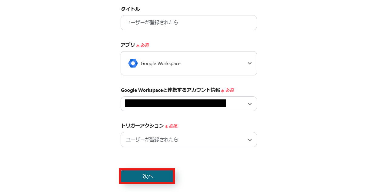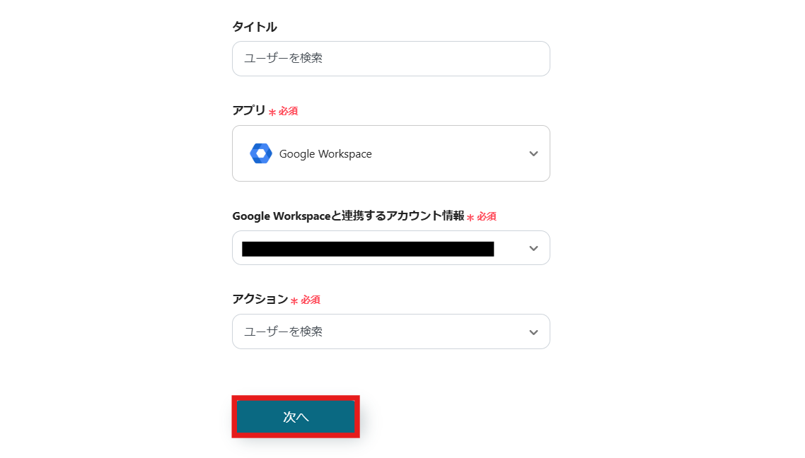 6.Google Workspaceと連携するアカウント情報を入力します。