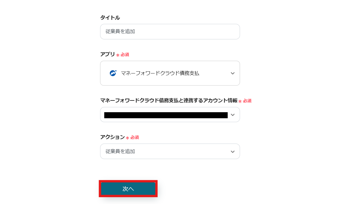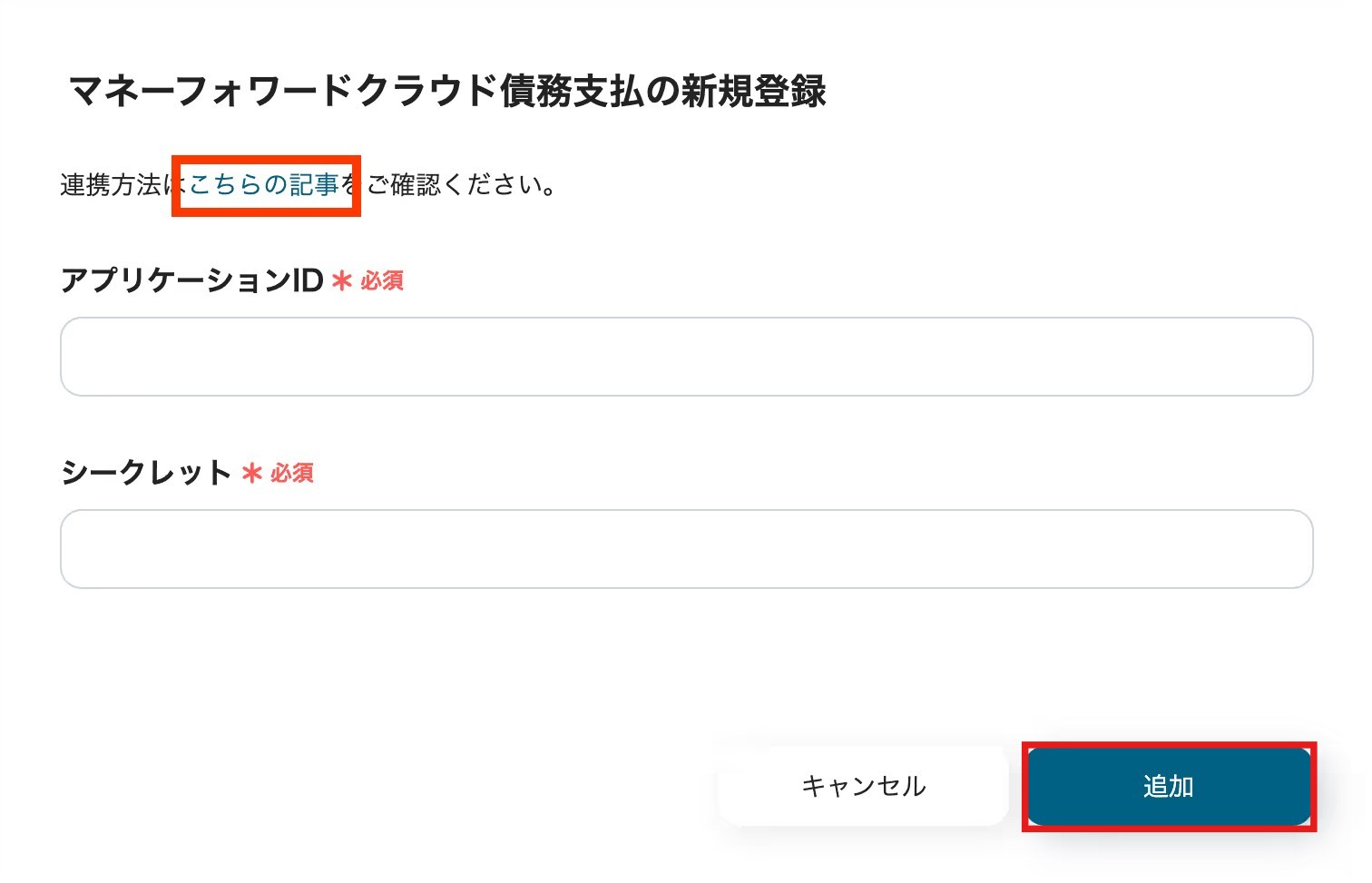 2.マネーフォワード クラウド債務支払と連携するアカウント情報を入力します。