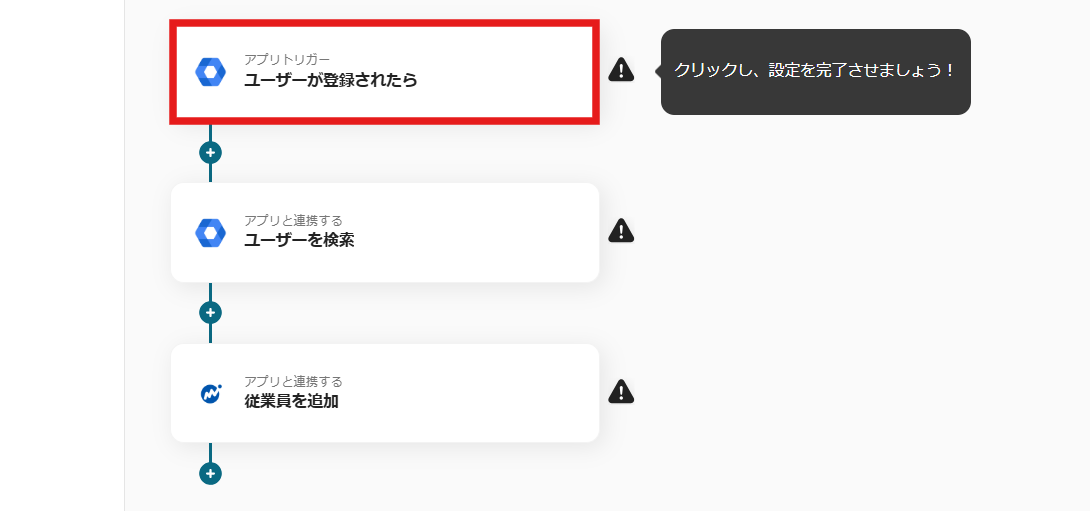 1.まず、一番上の「ユーザーが登録されたら」のアイコンをクリックします。