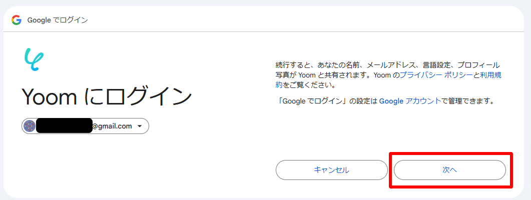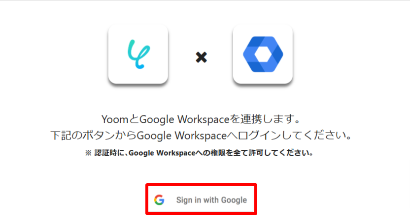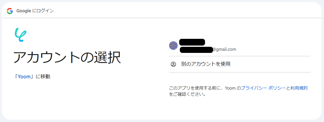 マイアプリ連携するアカウントを選択し「Yoomにログイン」の画面に移動します。