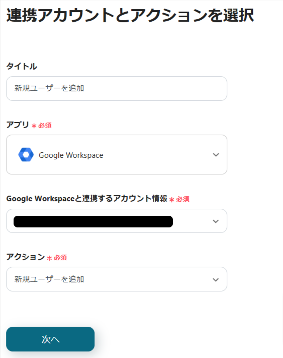 次に、Google Workspaceの新規ユーザー追加の設定を行います。
