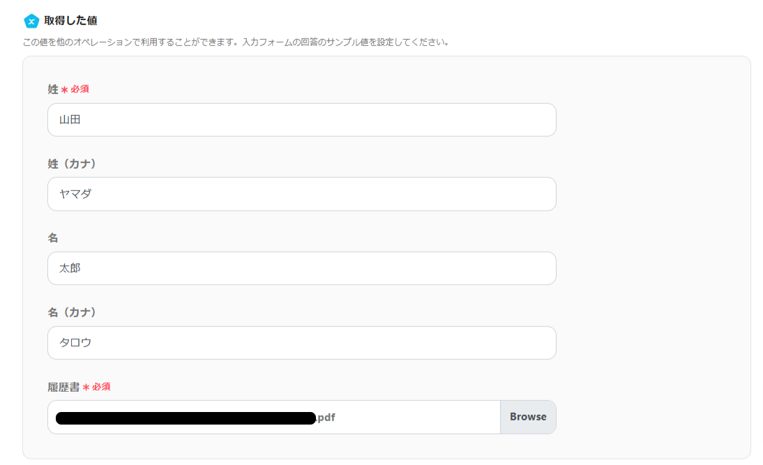 また、マイアプリ連携とは別にフロー設定時のテストで使用する履歴書もあらかじめ準備しておきましょう。