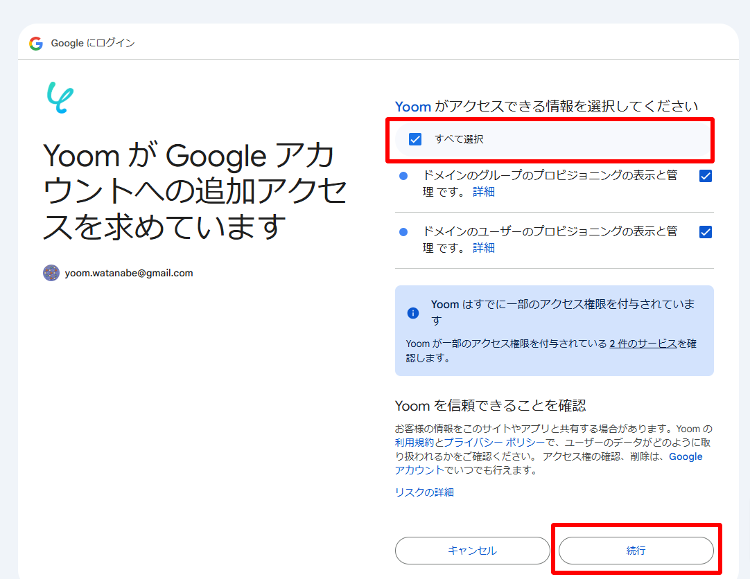 「Sign in with Google」をクリックすると、Googleアカウントの選択画面に移行します。