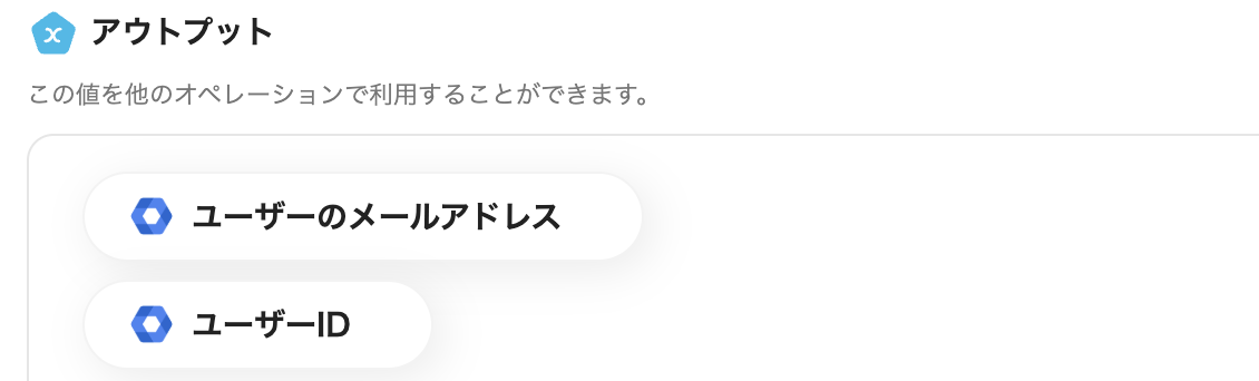 アウトプット情報は、「この値を他のオペレーションで利用することができます。」という注釈の通り、この後のステップで引用・活用できます。