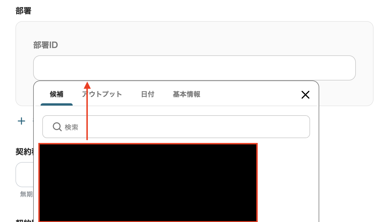 (5)「部署」や「カスタム項目」も『候補』から情報を引用できます。
