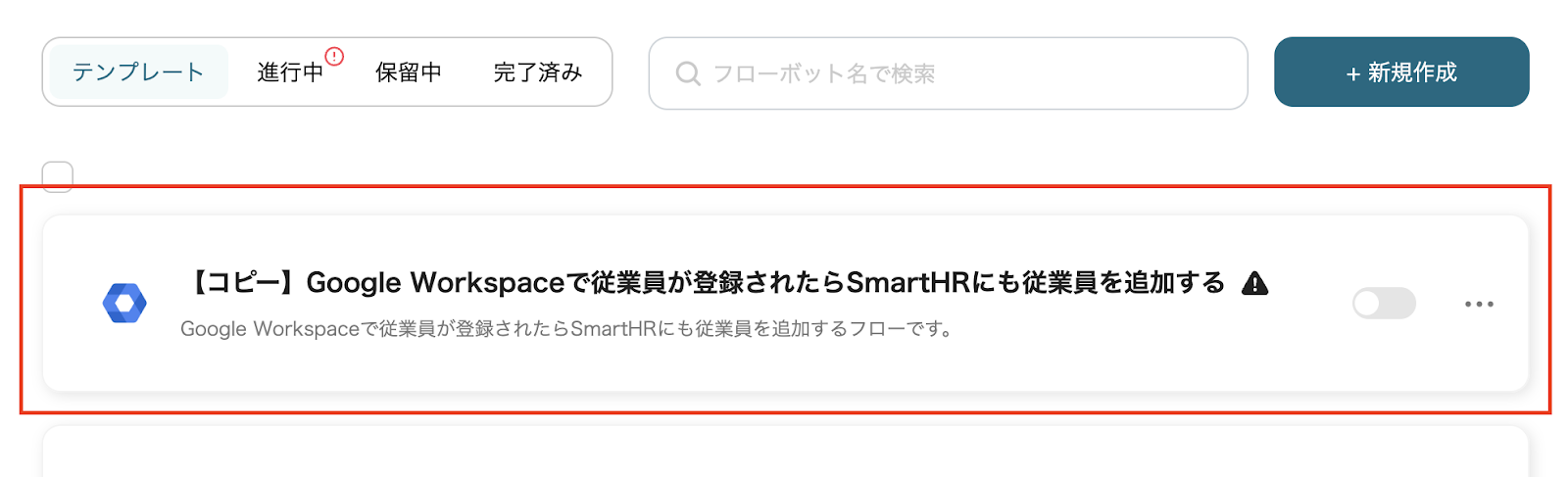 それでは、実際に「Google Workspaceで従業員が登録されたらSmartHRにも従業員を追加する」のテンプレートを使ったフローボットを作成していきましょう。