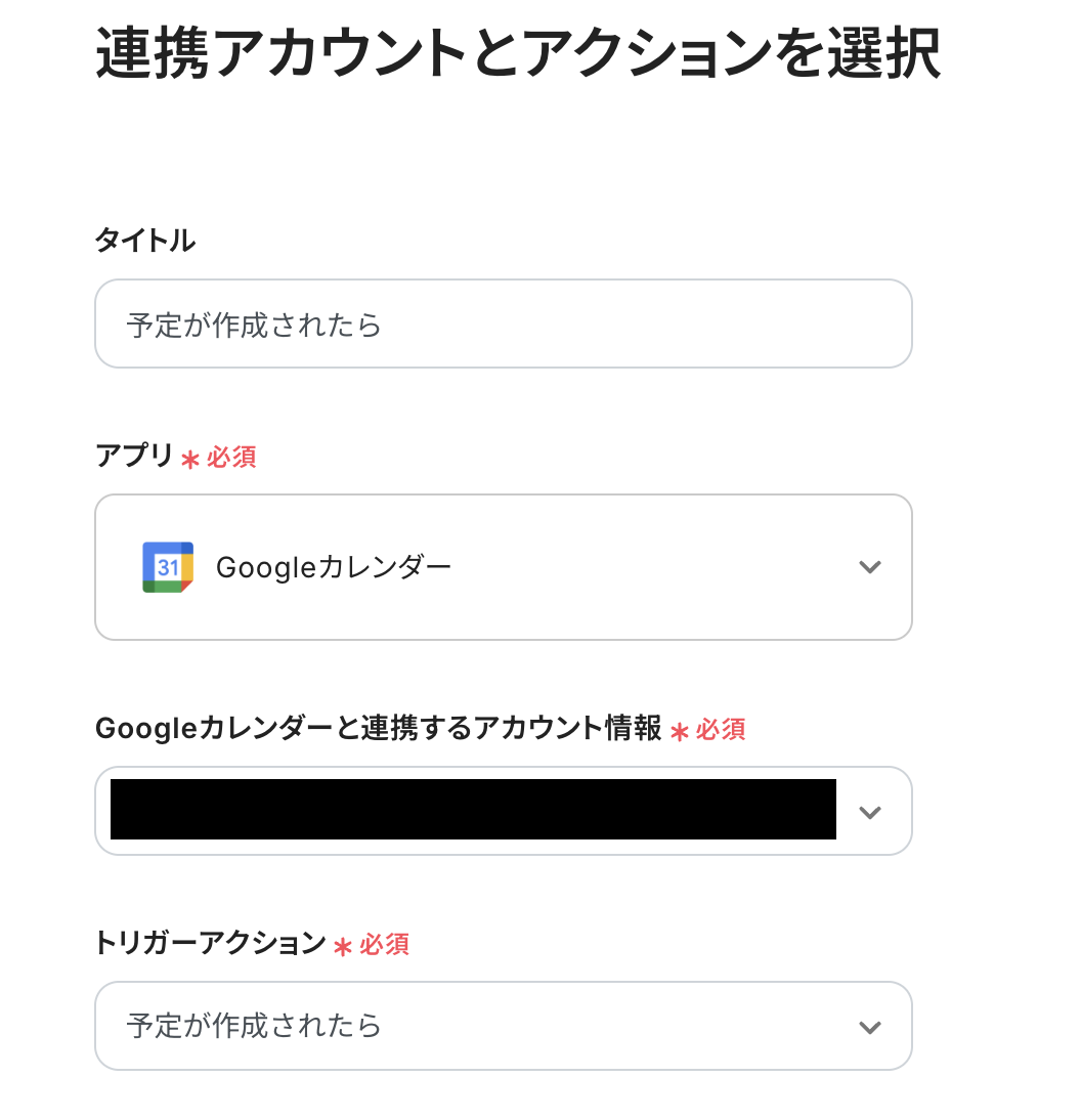 - Googleカレンダーのトリガー設定及びNotionのアクション設定