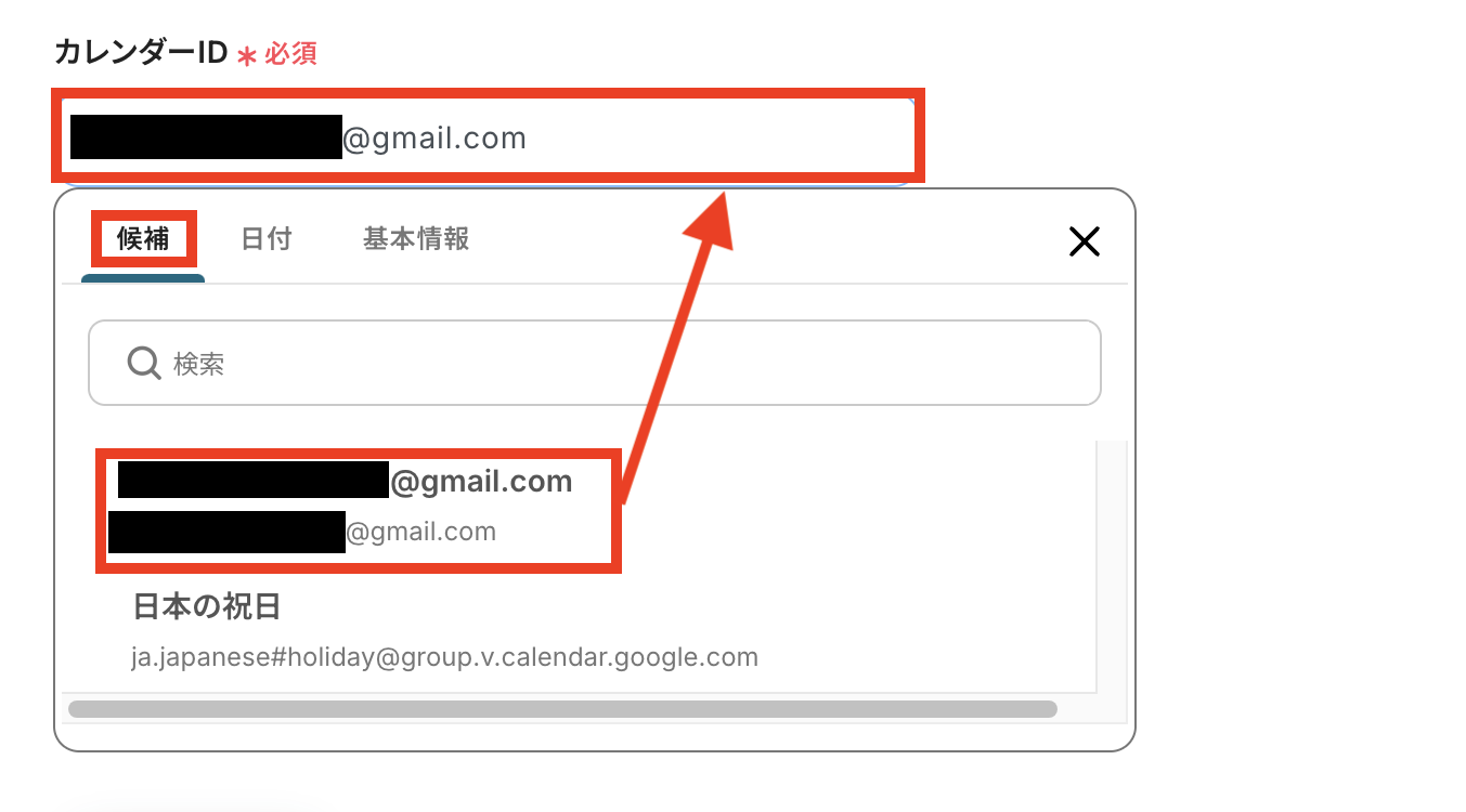 「Googleカレンダーと連携するアカウント情報」:合っているか確認