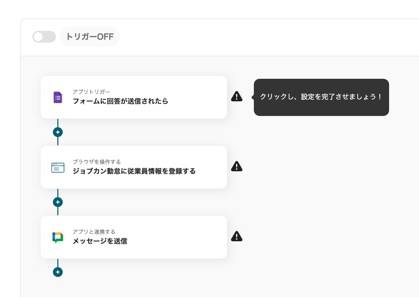 - フォームトリガー・ブラウザ操作・アプリ連携