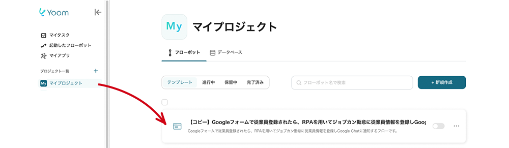 ステップ2 Yoomのフローボットテンプレートをマイプロジェクトへコピーする