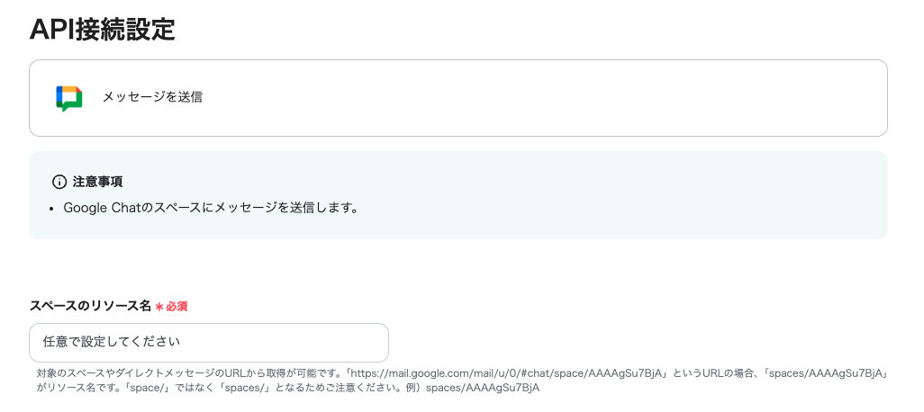 - 編集欄をクリックするとプルダウンが開き、連携済みGoogle Chatのスペース名が表示されます。スペース名を選択すると、IDが引用されます。