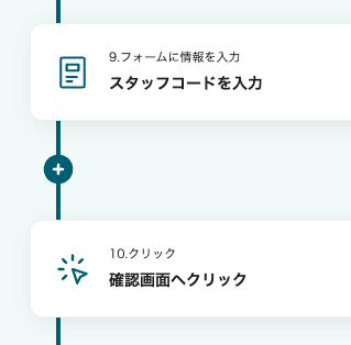 - 今回はスタッフIDを入力した後、確認画面に遷移するまでに、電話番号の入力を差し込んでみます。プラスボタンをクリックすると、操作メニューが開きます。