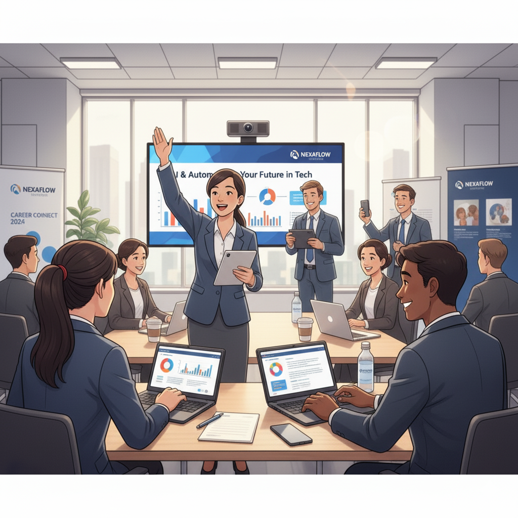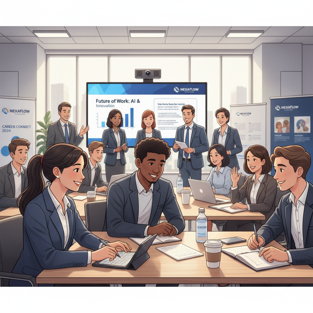 プロンプト あなたはイラストレーターです。企業のSNSに掲載するため「企業が開催するセミナーに参加する学生」のイラストを作成してください。