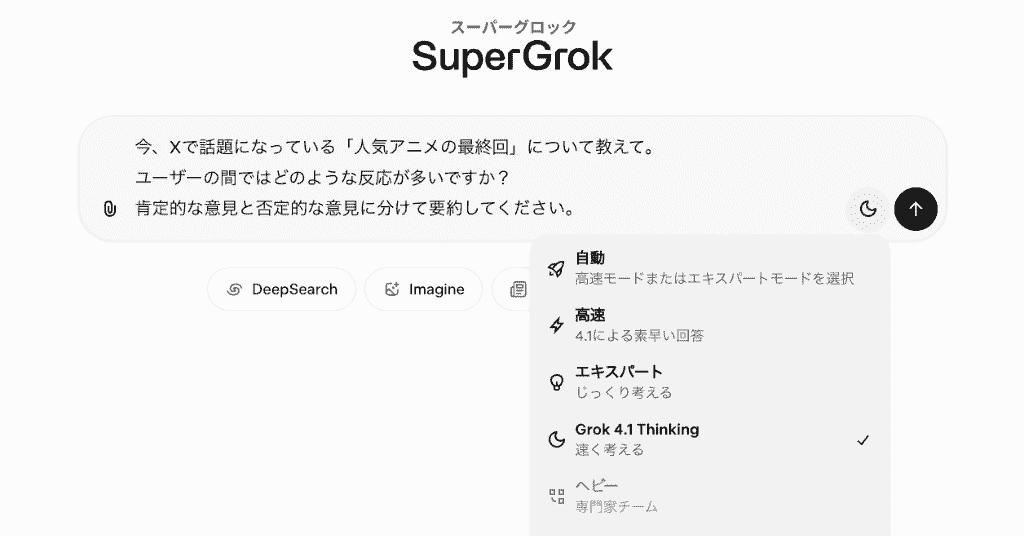 次は、Grokの真骨頂である「SNS上のリアルタイム検索」能力を検証します。