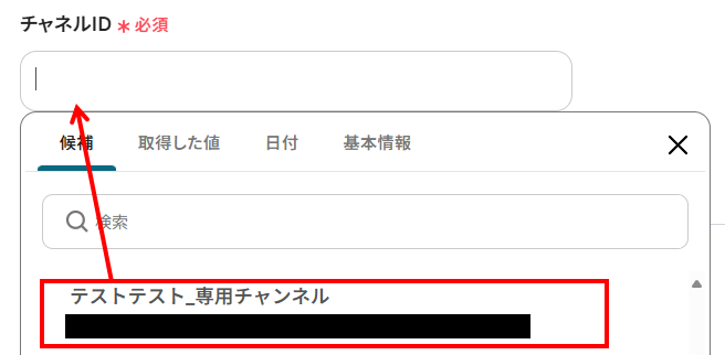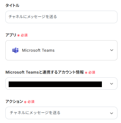 - チャネルID:チームID同様、候補からMicrosoft Teamsのチャネルを選択してください。