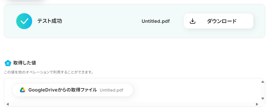 入力が完了したら、「テスト」を実行し成功するか確認してみましょう。