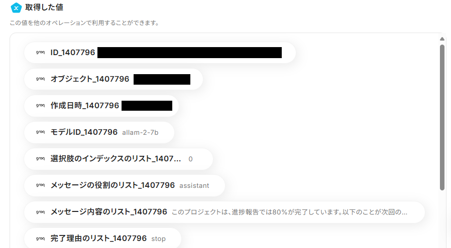 Groq APIのテキスト生成アクションをフローの中に組み込むことで、ドキュメントの要約や文章作成といったタスクの自動化が可能です。