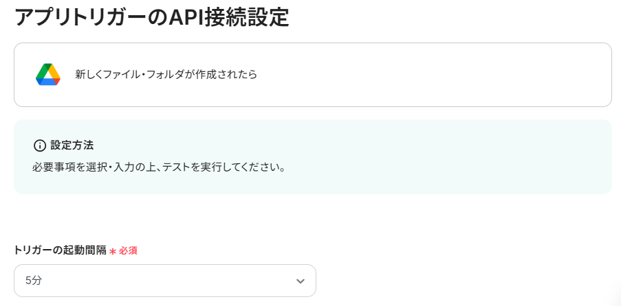 ・トリガーは5分、10分、15分、30分、60分の間隔で起動間隔を選択できます。