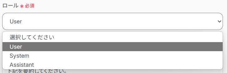 - ロール:プルダウンから選択可能です。業務内容に合わせて選んでください。