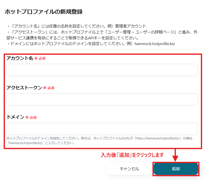 ・Sansan、ホットプロファイルのそれぞれとYoomを連携してください。