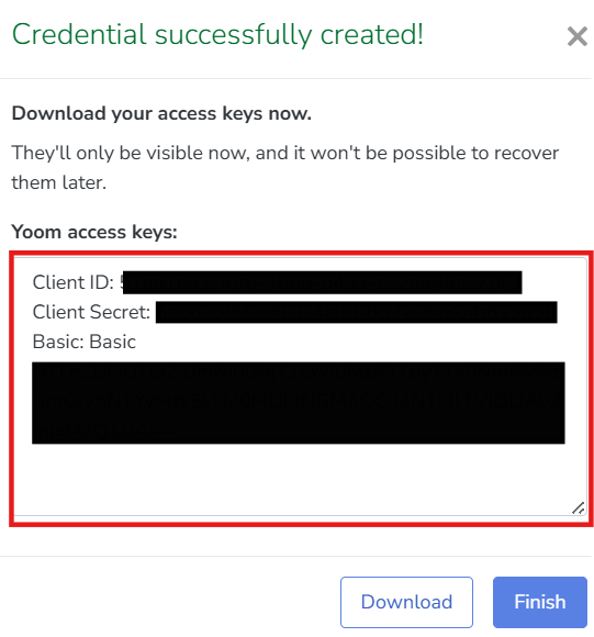 3.画面が切り替わったら、「Client ID」「Client Secret」「Basic」の値が表示されます。
