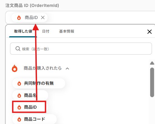 4.追加するレコードの値の入力には、先ほど取得したHotmartのアウトプットを選択できます。