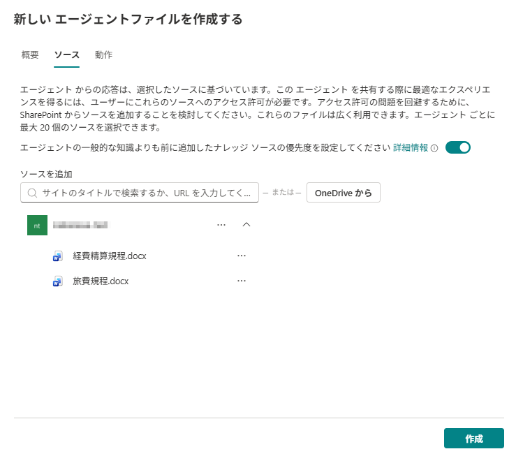 SharePointのファイルをソースとしてエージェントを作成してみて、以下のことがわかりました。