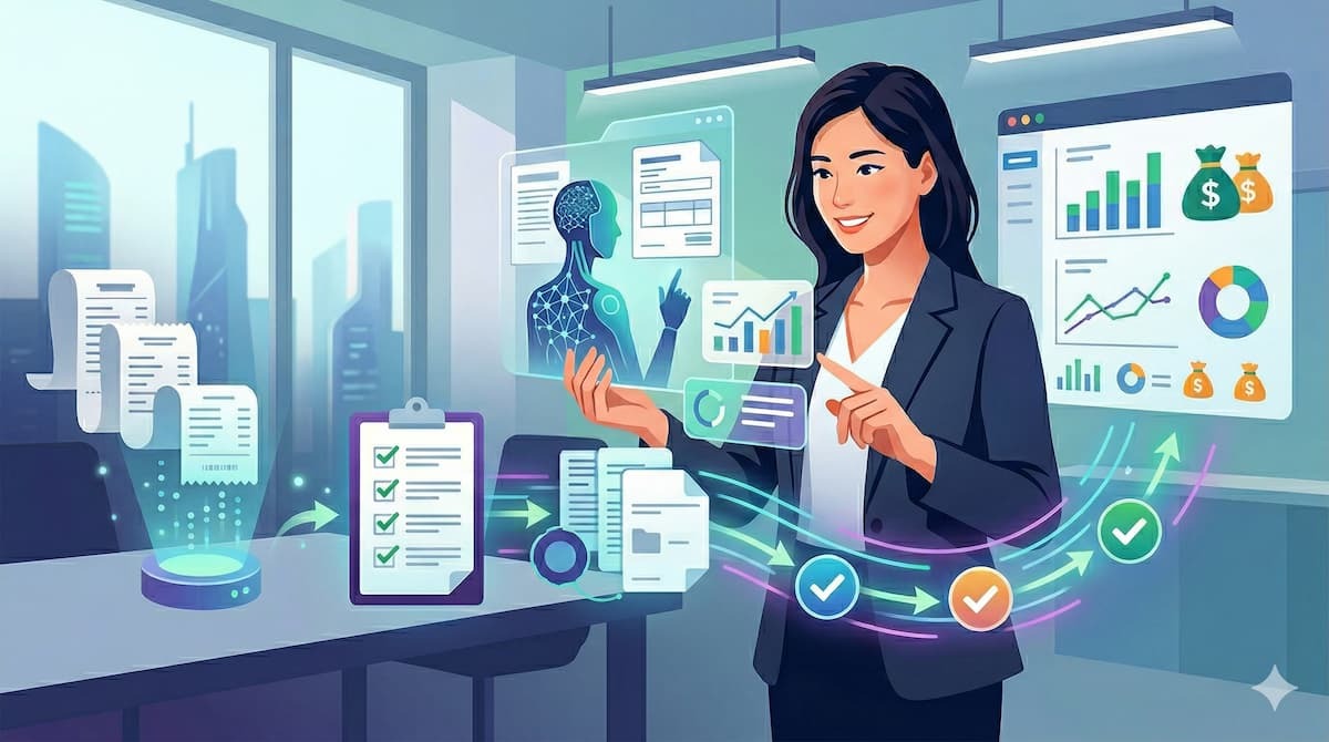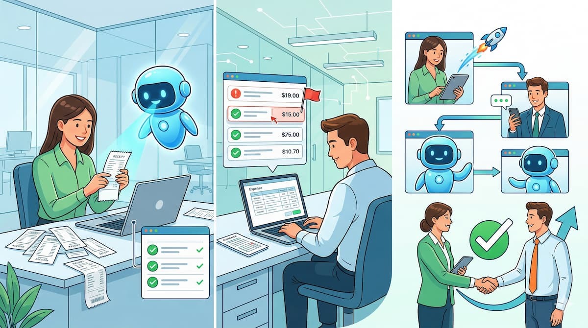 領収書のデータ化、社内規程のチェック、承認フローの進行。こうした手間のかかる工程をAIに任せることで、