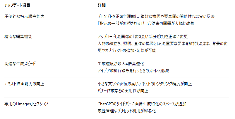生成速度が最大4倍に向上し、ユーザーの意図を汲み取る「指示順守能力」が飛躍的に向上したとされています。