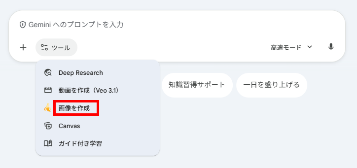 3.「ツール」または入力欄の下の「画像作成」を選択