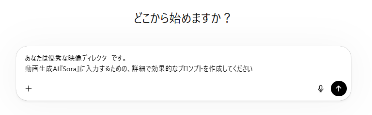 これにより、ChatGPTは単なる文章作成ではなく、映像制作のプロフェッショナルとしての視点を持って回答を生成するモードに入ります。