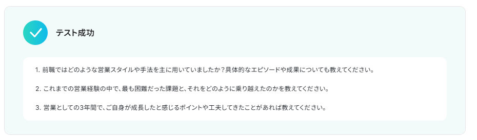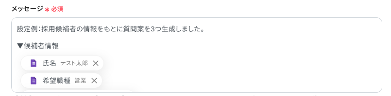受信した候補者情報から質問例を自動作成し、迅速にSlackへ通知できます。