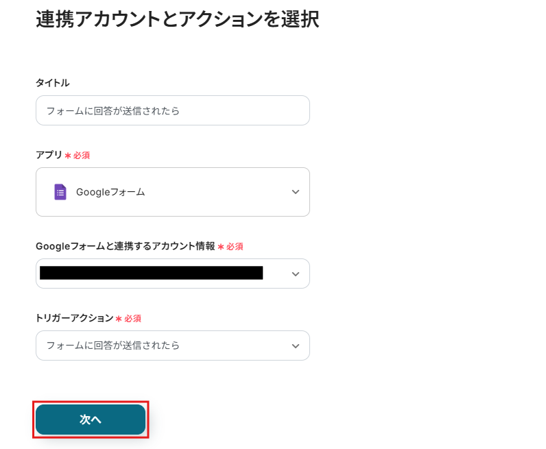 - Googleフォームのトリガー設定、Microsoft Teamsへの通知アクション設定