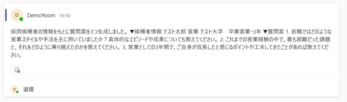 Slackで採用候補者の情報が投稿されたら、AIで面接の質問案を生成してMicrosoft Teamsに通知する