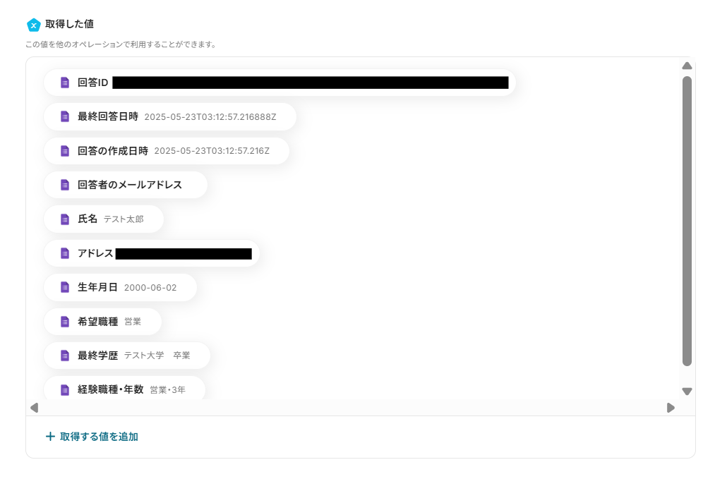 ・Googleフォームをトリガーとして使用した際の回答内容を取得する方法は下記を参照ください。