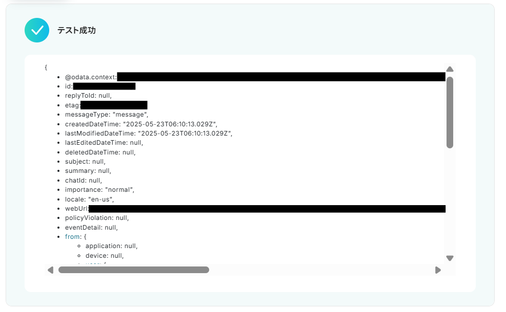 指定したMicrosoft Teamsのチャンネルに設定したメッセージが届いているか確認してください。