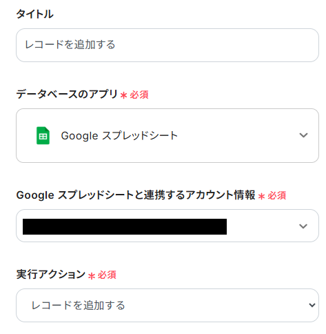 実行アクションは、テンプレート通り「レコードを追加する」のままで問題ありません。