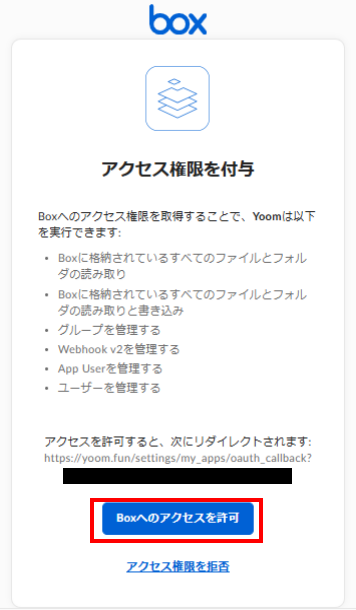 「Boxへのアクセスを許可」を選択してください。