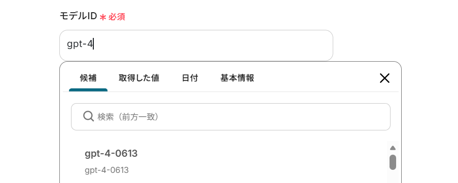 下へ進み、「モデルID」を候補から選択します。